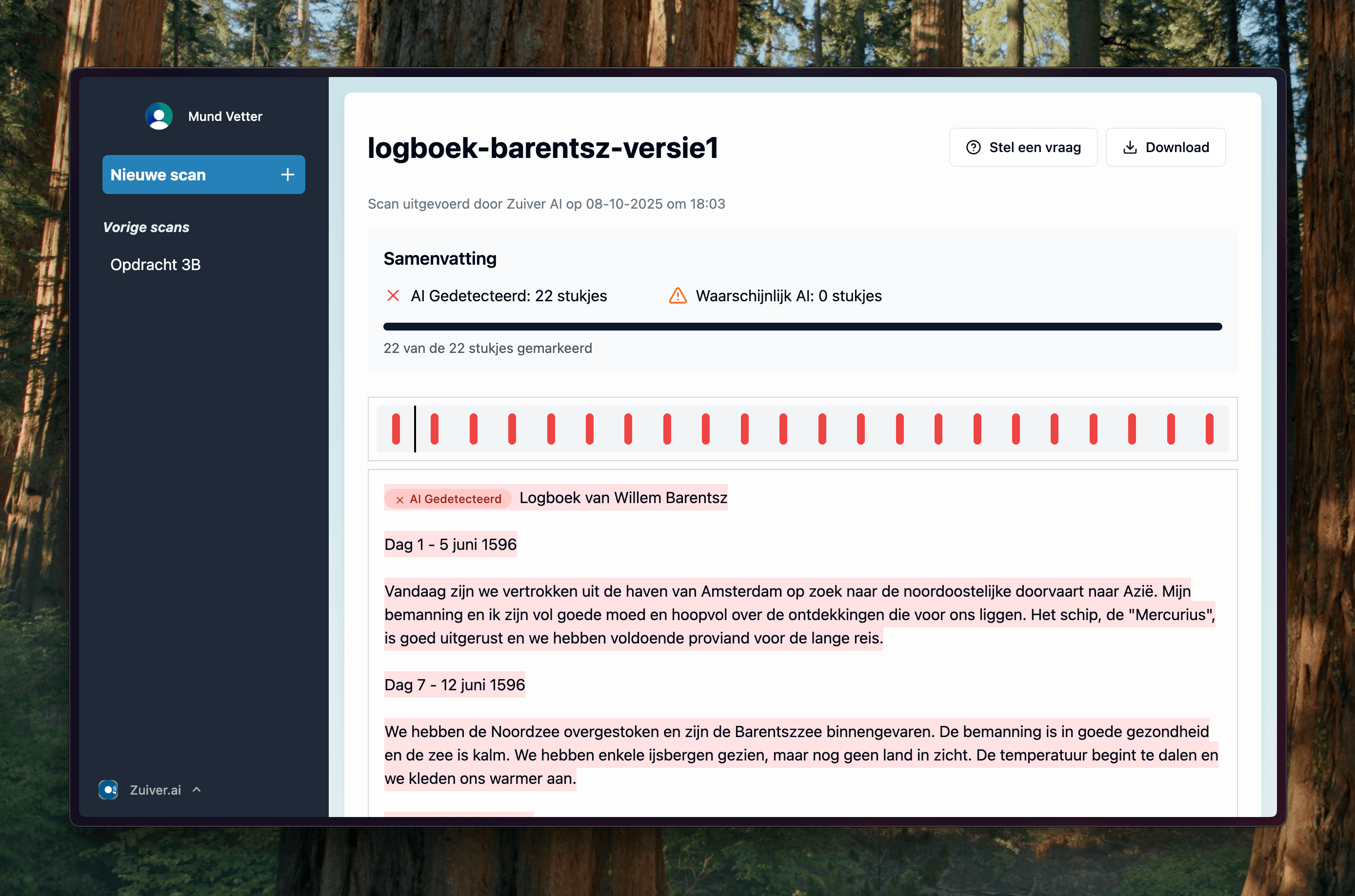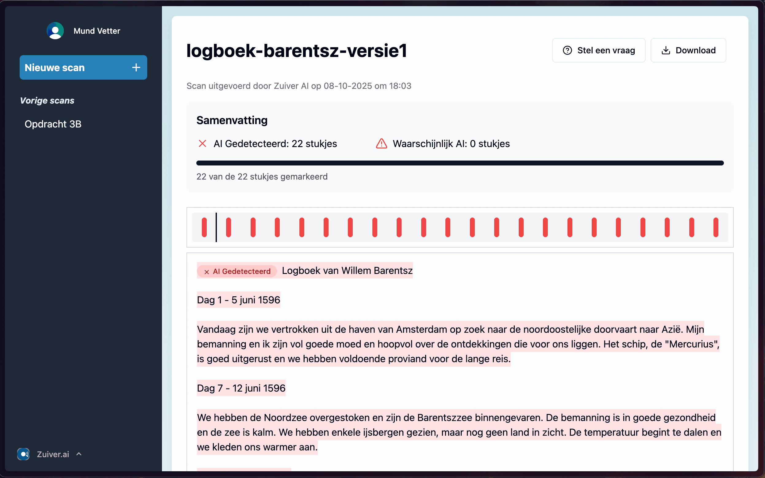 Onze tool biedt een overzichtelijke interface waar nauwkeurig wordt aangegeven waar AI is gebruikt.