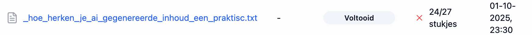 Er zijn verschillende online tools ontwikkeld om AI-teksten te detecteren, zoals GPTZero, Originality.AI en Turnitin's AI-detector. Een van de meest betrouwbare detectoren op dit moment is Zuiver.ai, dat zich onderscheidt door zijn hoge nauwkeurigheid en specifieke focus op Nederlandse teksten. Deze tools analyseren linguïstische patronen, complexiteit en voorspelbaarheid van teksten. Hoewel ze nuttig kunnen zijn, zijn ze niet onfeilbaar. Ze produceren regelmatig zowel valse positieven (menselijke tekst die als AI wordt gemarkeerd) als valse negatieven (AI-tekst die ongedetecteerd blijft).